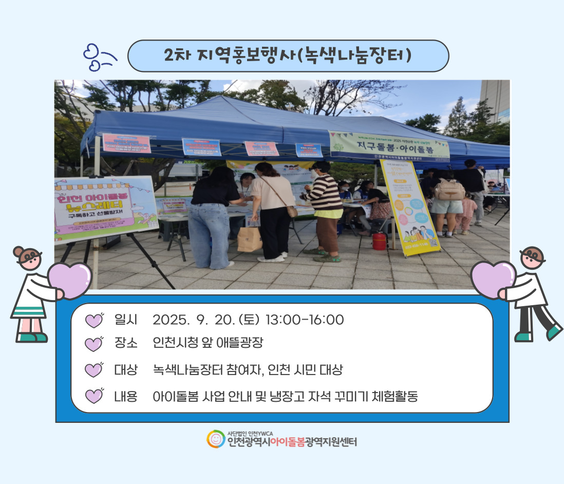 인천광역시아이돌봄광역지원센터는 2025년 두 번째로 열린 녹색나눔장터에 참여하여 시민들과 만났습니다.