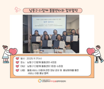 2025.9.17.(수) 남동구 다함께 돌봄센터 1호점~6호점 (6개기관)과 업무협약을 체결했습니다
