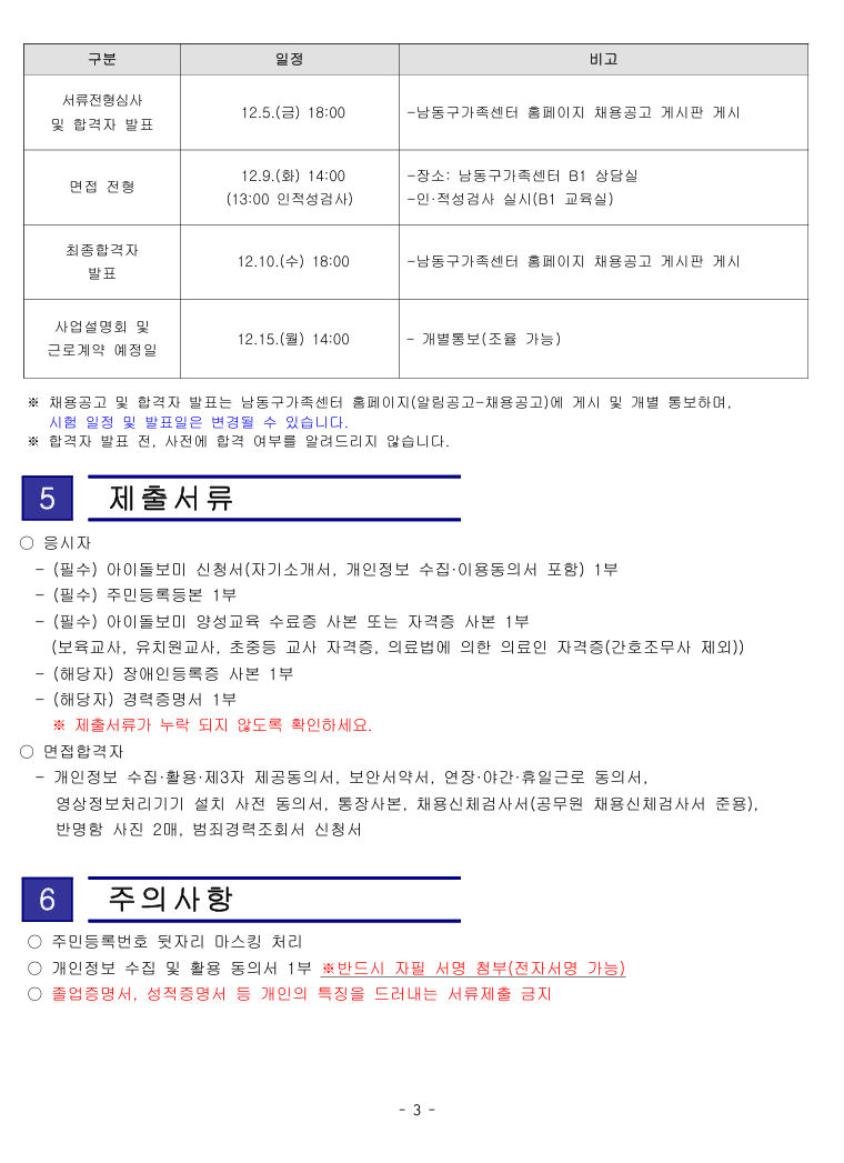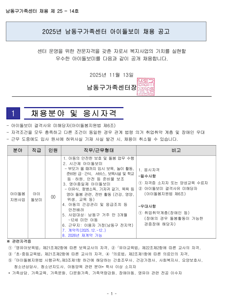 공지  [남동구 가족센터] 남동구 아이돌보미 채용 모집